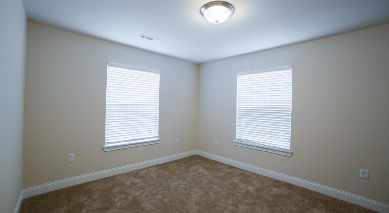 • a room with a carpet and a light on the ceiling